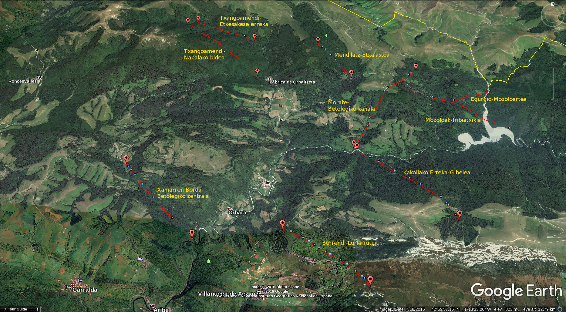 He podido marcar y guardar en formato .gpx y .kml los recorridos de la mayoría de los cables gracias a que los mapas históricos del SITNA están calibrados.